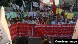 جماعت اسلامي ډله د فاټا په خېبرپښتونخوا کې ورګډولو او د سيمې نه د اېف سي ار قانونولرې کولو دپاره اسلام اباد ته لاريون هم کوي.