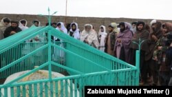 د طالبانو د حکومت ویاند ذبیح الله مجاهد د اتوار/یکشنبې په ورځ پخپل ټویټر پاڼه باندې ځیني تصویرونه خپاره کړل او ورسره یې ولیکل چې د ملا محمد عمر قبر " دیولړ مراسمو په ترڅ کې ښکاره شو."