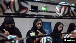 په سیالکوټ کې د بالونو جوړولو په یوه کارخانه کې کارکونکې یوه زنانه وايي ٫٫ په دې ورځو کې کار ډیر وي، زمونږ دیاړي هم ډیره شي او پېسې هم ډیرې پیدا کوو.٬٬