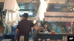په بازار کښې دننه مزدوران په وړو وړو ګاْډو کې کبان د یو ګودام نه بل ګودام ته رسوي.