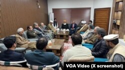په پاکستان حکومت مخالفه ګوندونو د نوي سره د انتخاباتو د غوښتنې لپاره د عملي ګامونو اخستو په غرض د محمود خان اڅکزي په کور کې غونډه کړې چې پکې وتلو سیاسي مشرانو برخه اخستې ده.