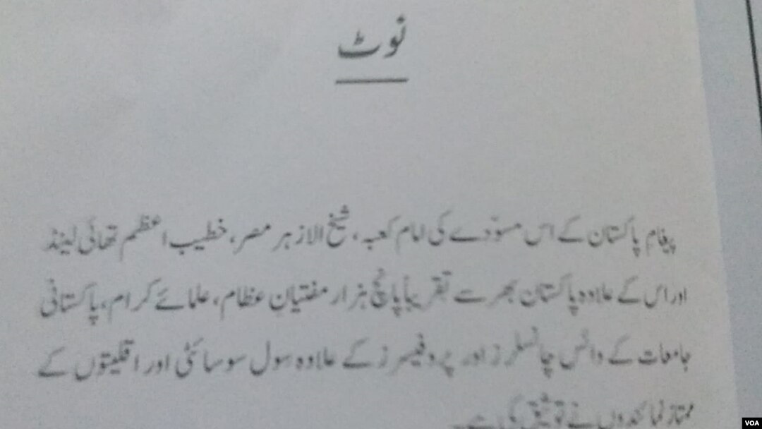 د پېغام پاکستان په نوم د ترهګرۍ پر ضد دغه بيانيه د پاکستان پينځه زره علماؤ وړاندې منظوره کړې وه خو اوس حکومت پاکستان د اسلامک پوهنتون اسلام اباد په مرسته دا پېغام د هېواد ټولو غټو پوهنتونو ته رسول پېل کړي دي.