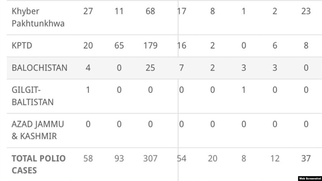 په ملکي کچه د پوليو ضد پروګرام د شمېرو ترمخه روان کال تر ټولو زياتې د پوليو پېښې د خېبرپښتونخوا په بنو ضلع کې مخې ته راغلي چې شمېره ۱۴ ده.